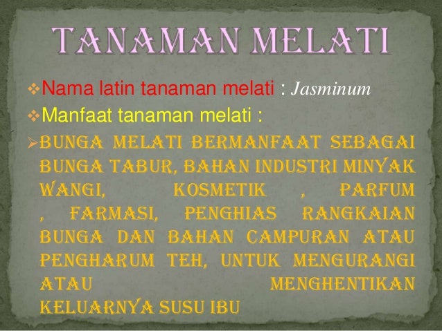 07 01 2019 Nama Latin Bunga Melati Untuk nama latin melati adalah jasminum sambac kalau untuk nama latin bunga melati adalah jasminum officinale Melati ini di Indonesia dilambangkan dengan kemurnian dan kesucian Karena hal itulah bunga melati ini sering ditemui sebagai hiasan untuk acara pernikahan di daerah Indonesia